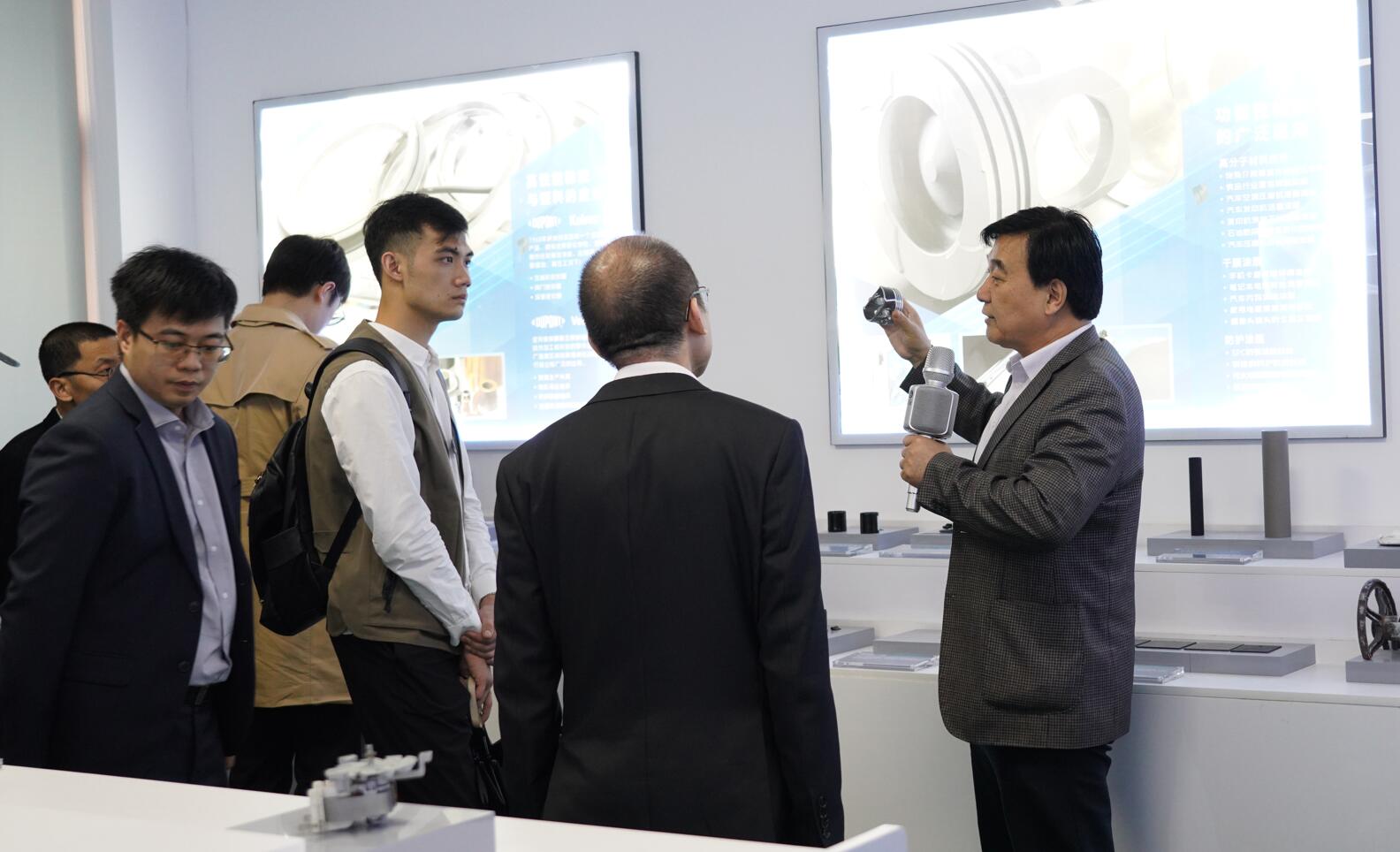 來訪人員先后參觀了順益科技園噴涂實驗中心、新材料應用創新基地建設與成果展、工業集成服務展示體驗中心、德國漢高樂泰體驗中心、Krytox高性能潤滑劑應用展示廳、新能源汽車新材料應用展示廳、高性能彈性體及塑料應用展示廳、特種功能涂層材料應用展示廳及順益科技園新材料科普教育基地等地。參觀人員對順益新材料新技術應用創新基地的發展取得的成績給予了充分肯定。